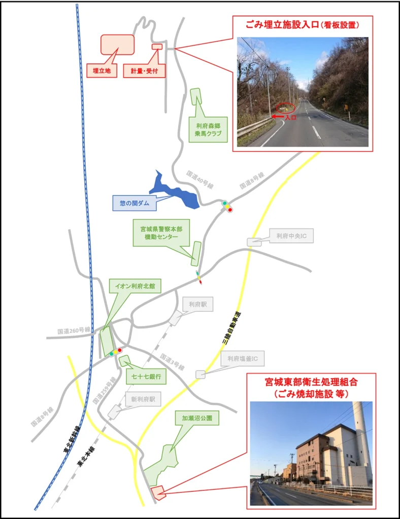 ごみ埋立施設は、焼却施設からの焼却灰、粗大ごみ処理施設からの破砕不燃物や組合管内(多賀城市、七ヶ浜町、利府町、松島町)で発生した不燃ごみを埋め立てています。