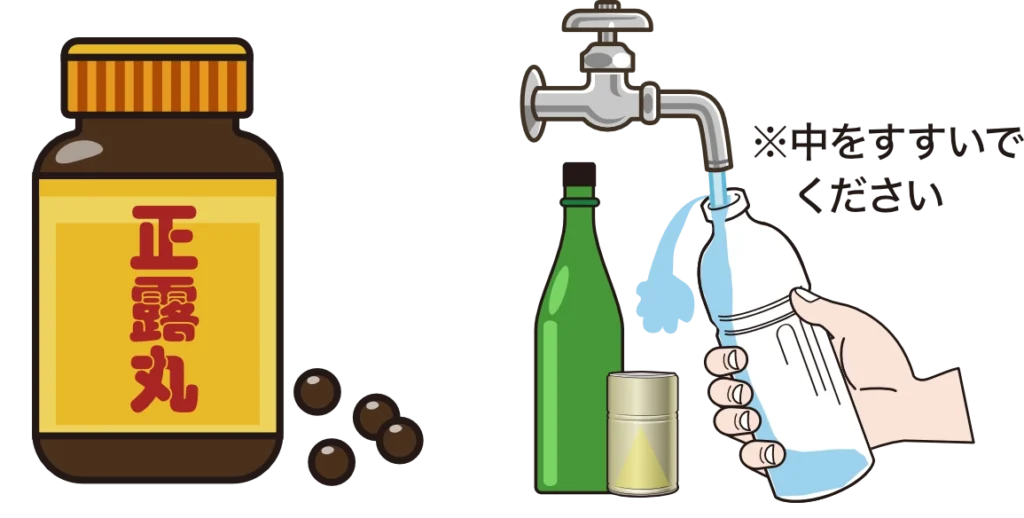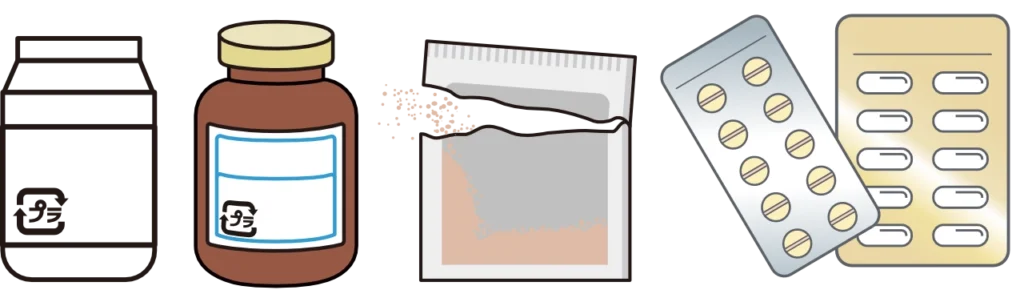 - 錠剤などの包装の裏にある金色や銀色シートは、はがさなくてもかまいません。